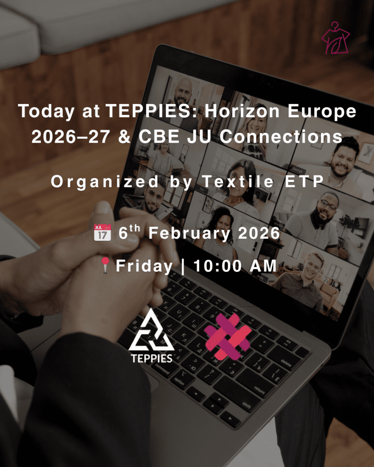 We’re pleased to share that BioFashionTech will be participating in the TEPPIES Brokerage Event on 6 February, organized by Textile ETP in connection with the Horizon Europe 2026–27 and CBE JU calls.